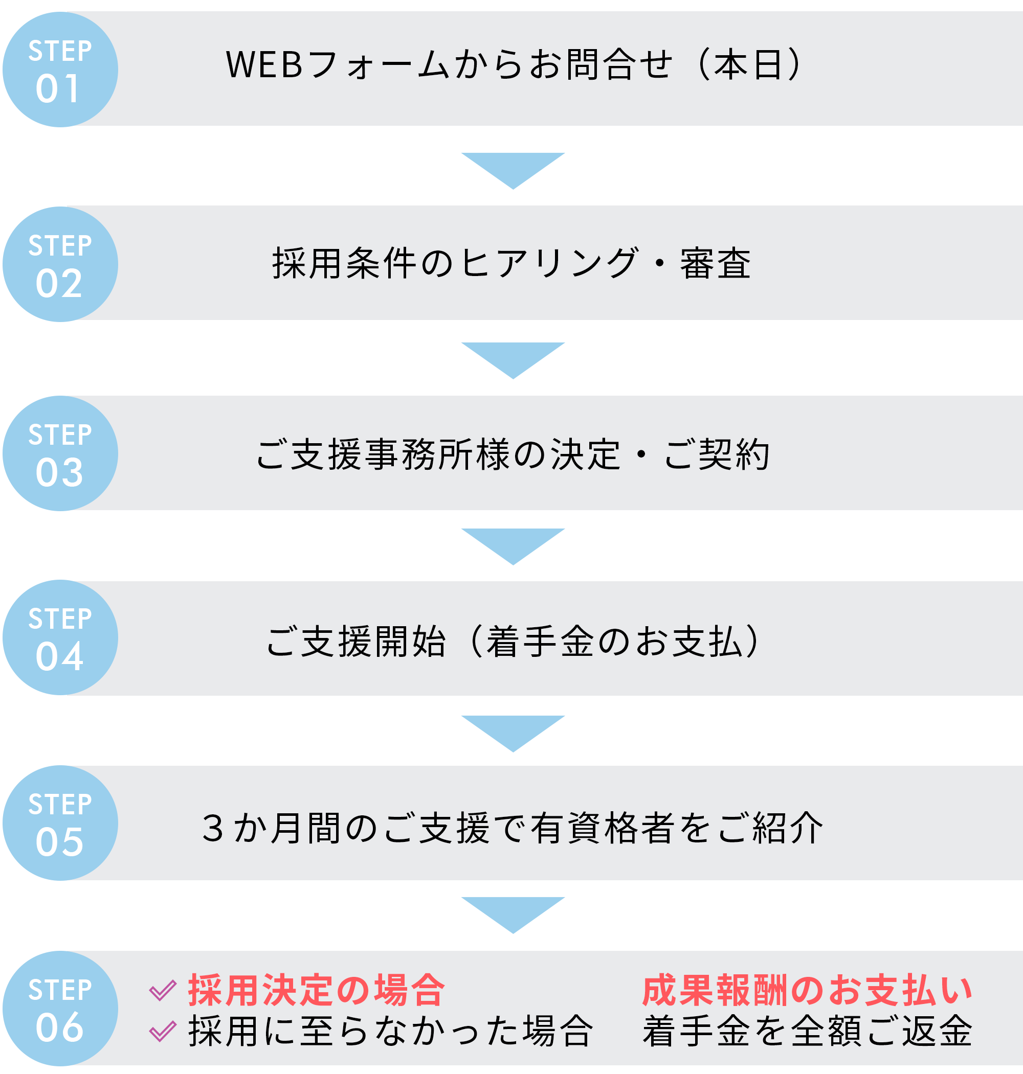 そのため、お客様用の求人ページで求職者(有資格者)を獲得できれば、間違いなく求職者(有資格者)の紹介を受けることができます。