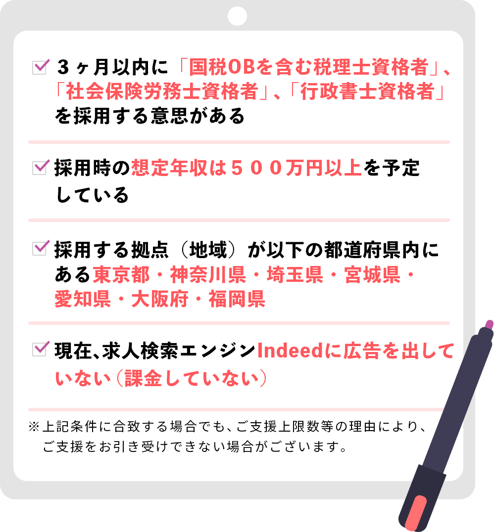 - 業務領域を拡大するために社労士や行政書士資格者を採用したい…